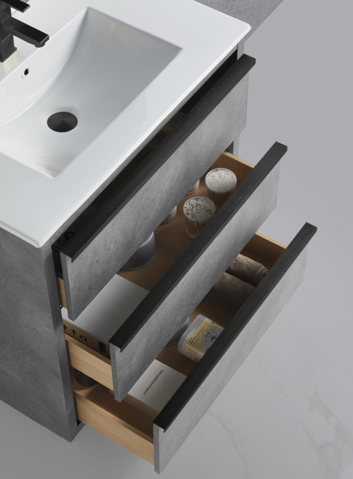 Cement Grey CAMBRIDGE vanities arrives with Matte Black handles installed by default. BAGNO ITALIA include a set of Chrome handles with each vanity at no extra cost to allow customers to freely choose the right finish for their bathroom project.